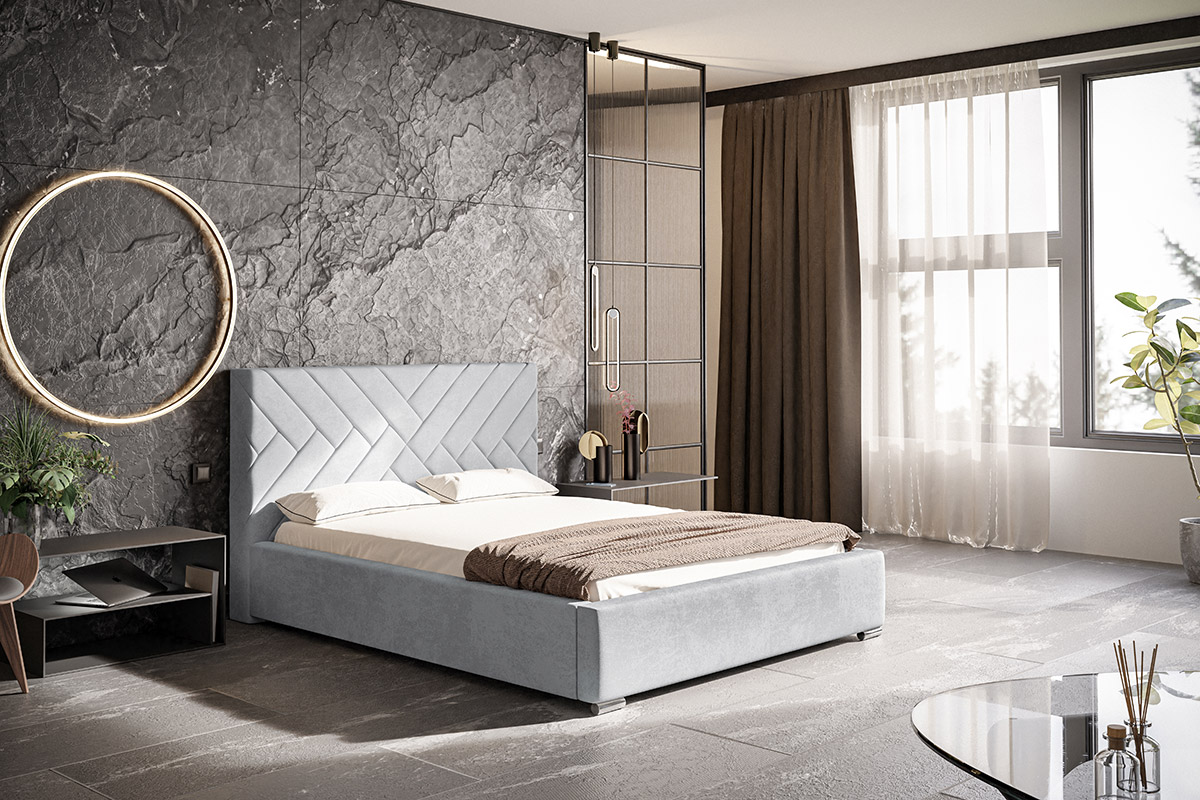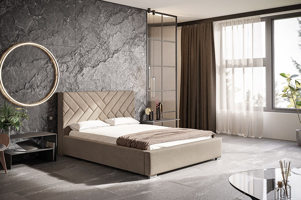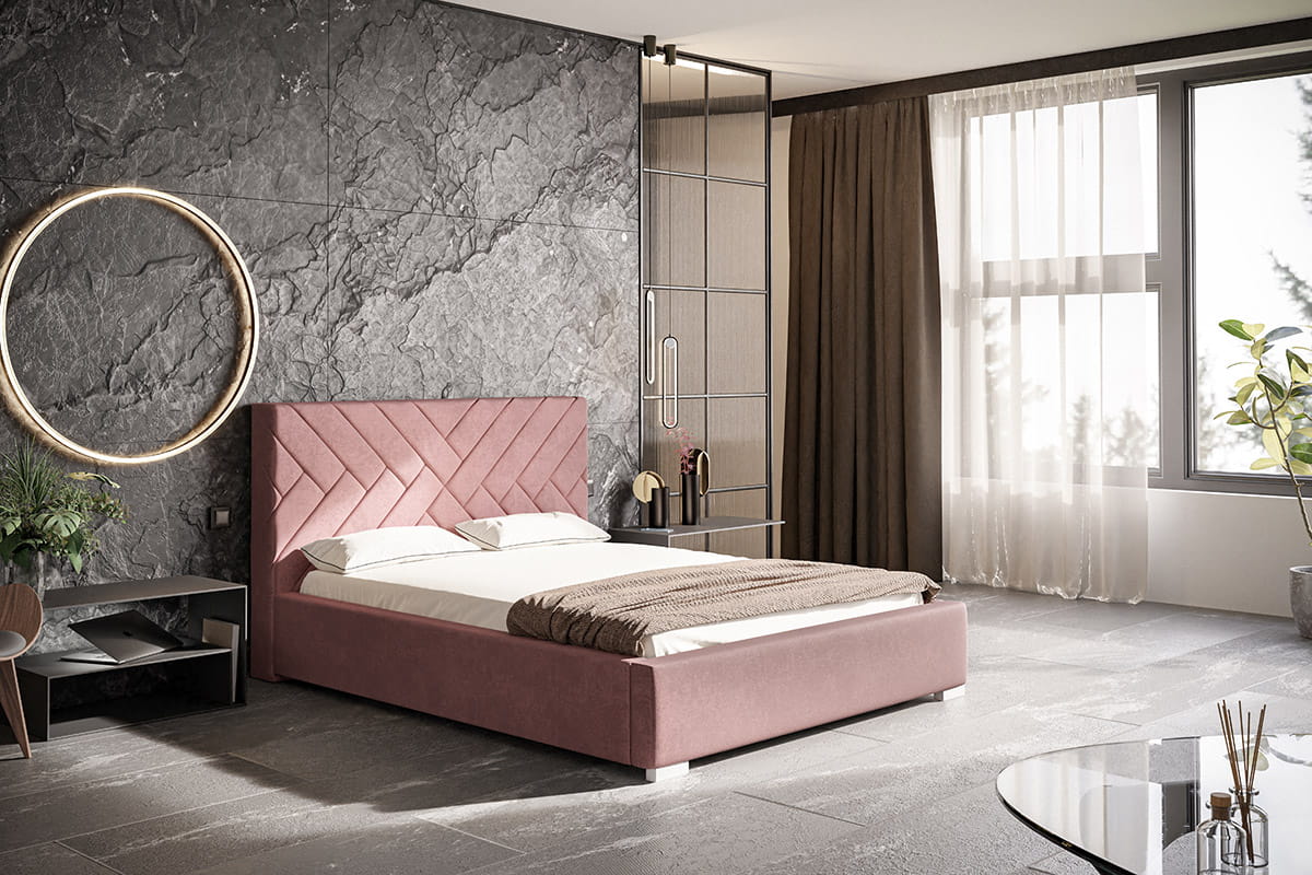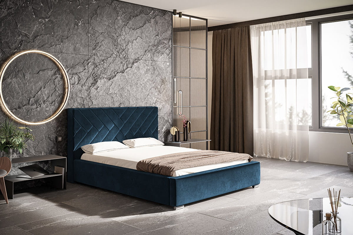 Łóżko tapicerowane ze stelażem i pojemnikiem MALMO PREMIUM