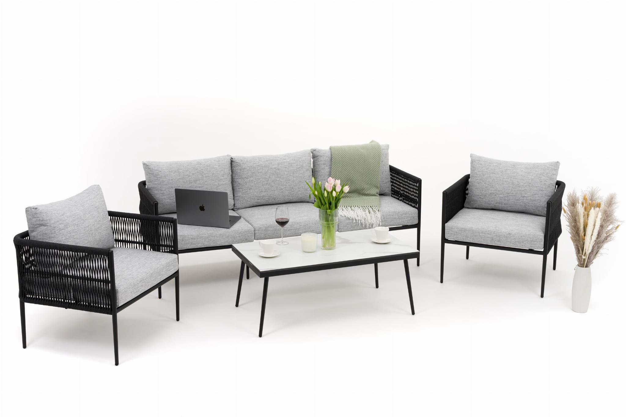 ZESTAW MEBLI OGRODOWYCH WYPOCZYNKOWYCH BELIZE BIAŁO-SZARY