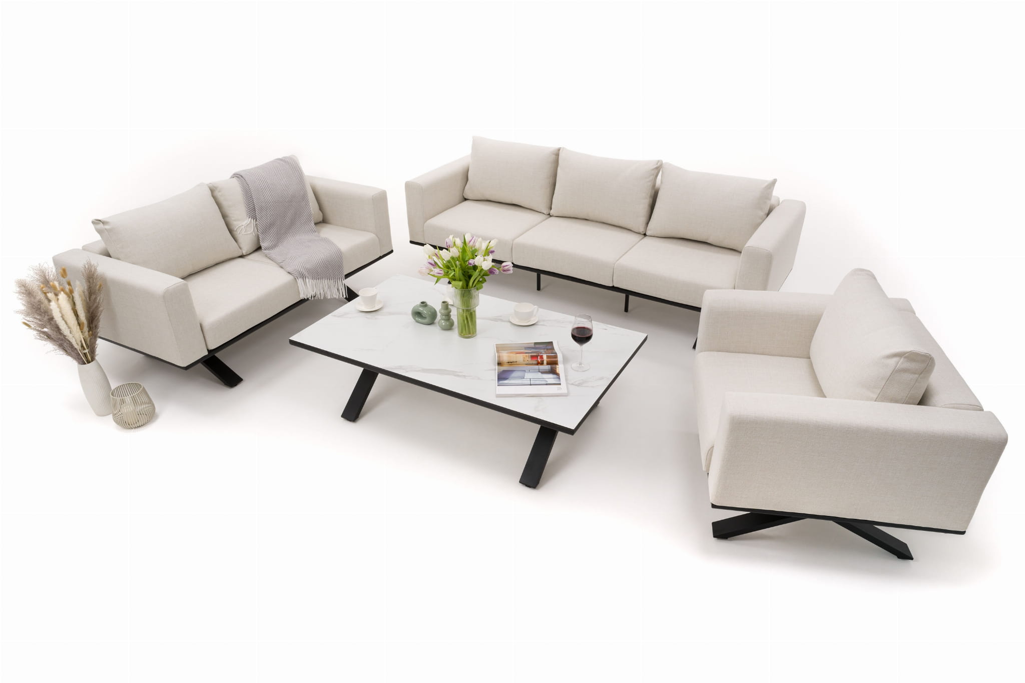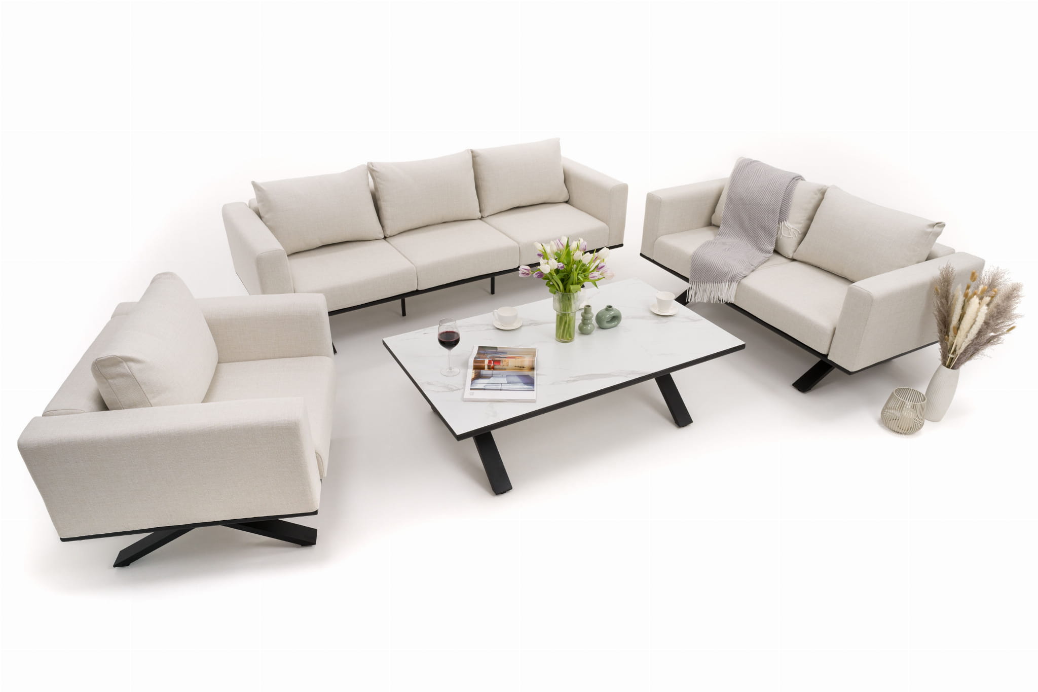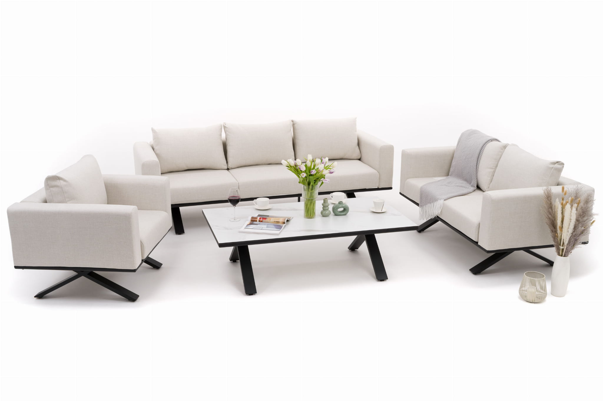 ZESTAW MEBLI OGRODOWYCH WYPOCZYNKOWYCH MARABELLA BEŻOWO - BIAŁY