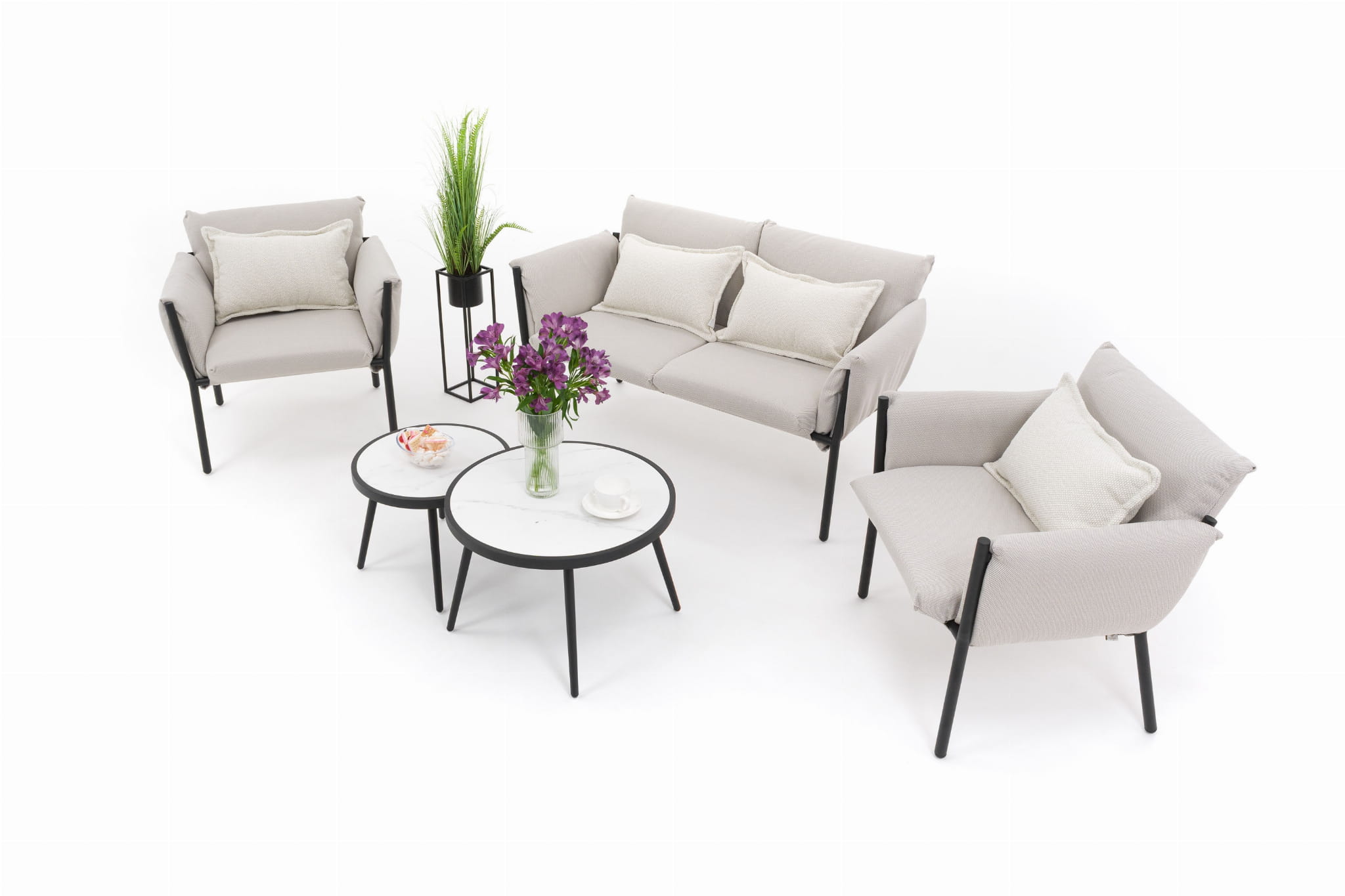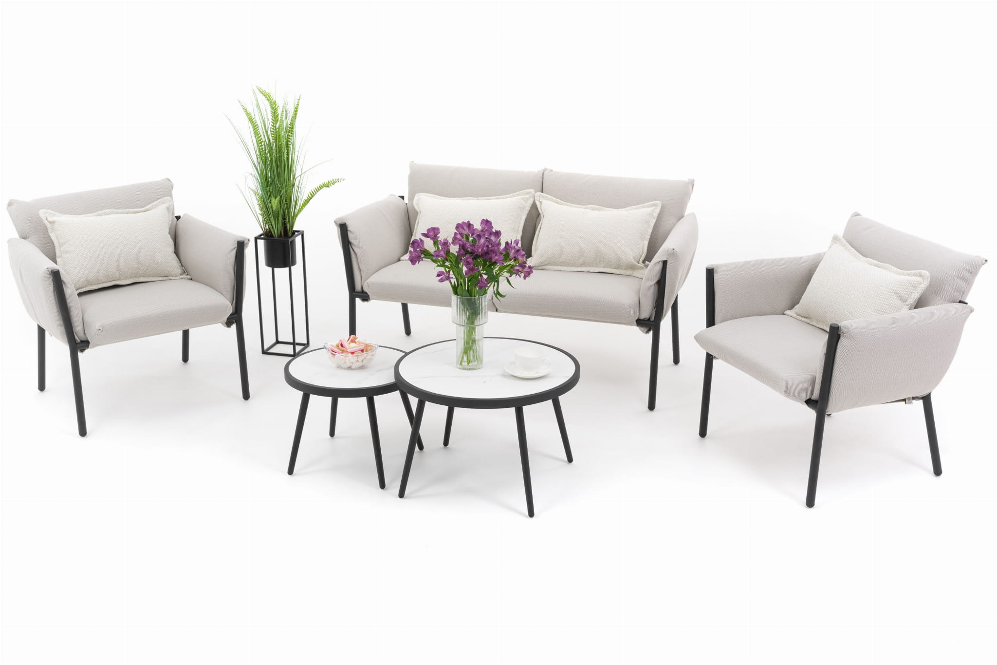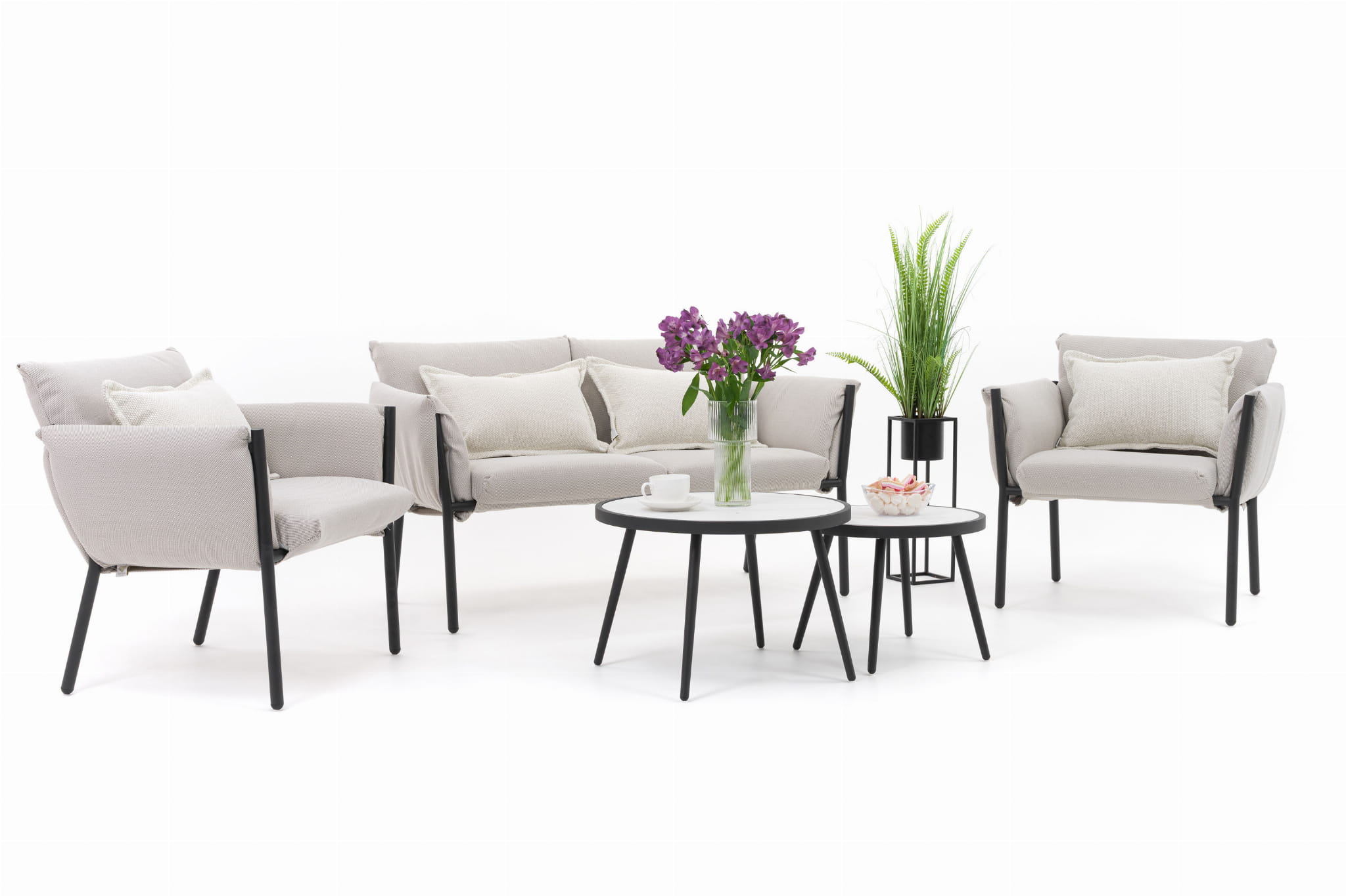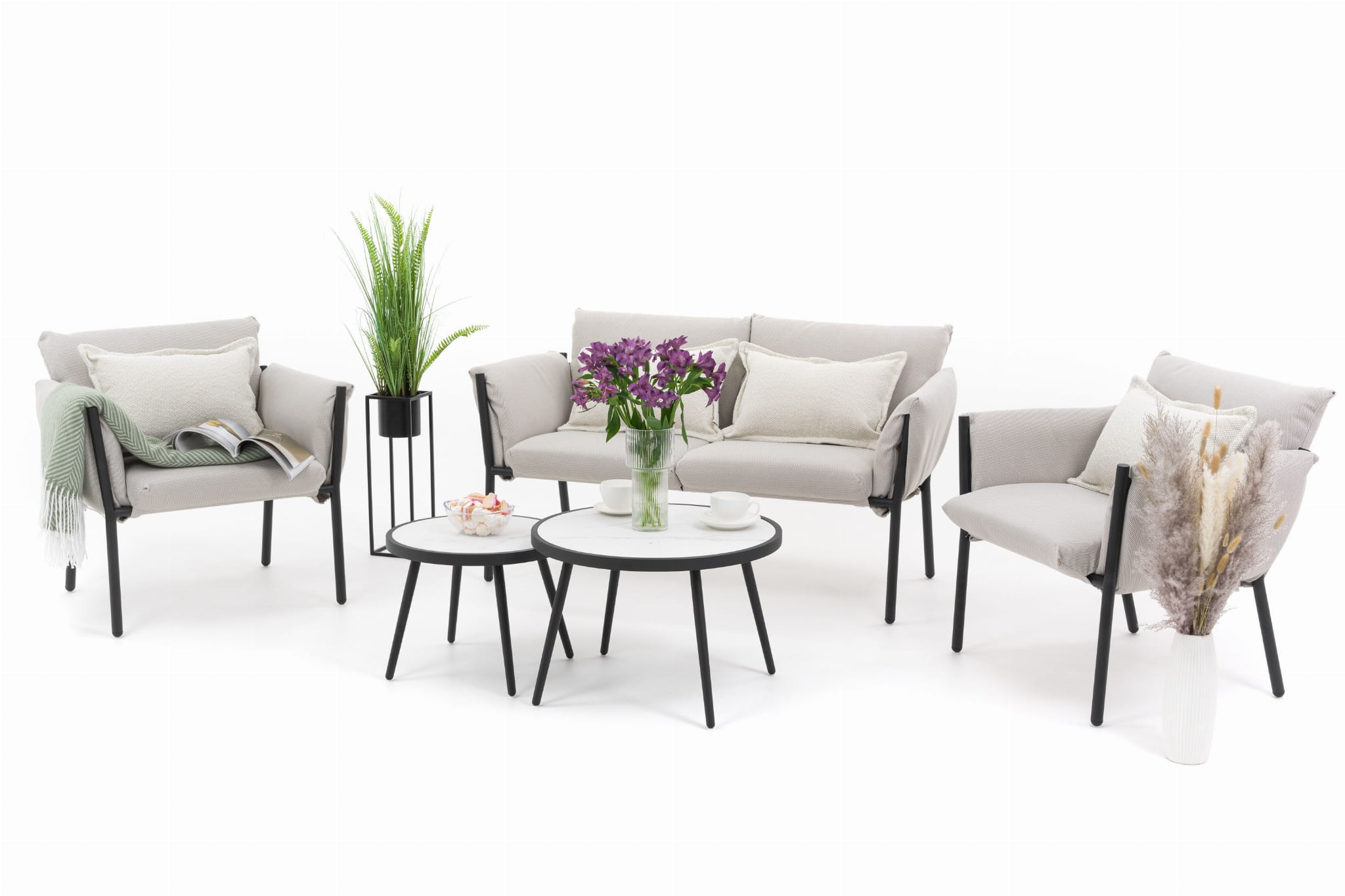 ZESTAW MEBLI OGRODOWYCH WYPOCZYNKOWYCH TULUM BEŻOWO-CZARNY